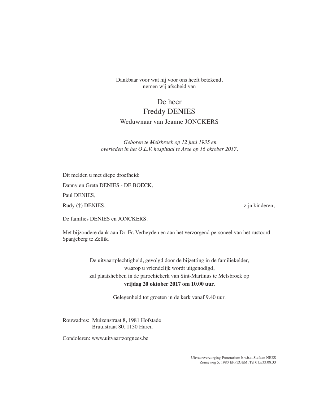 Overleden te Asse (1730) op maandag 16 oktober 2017 op 82-jarige leeftijd