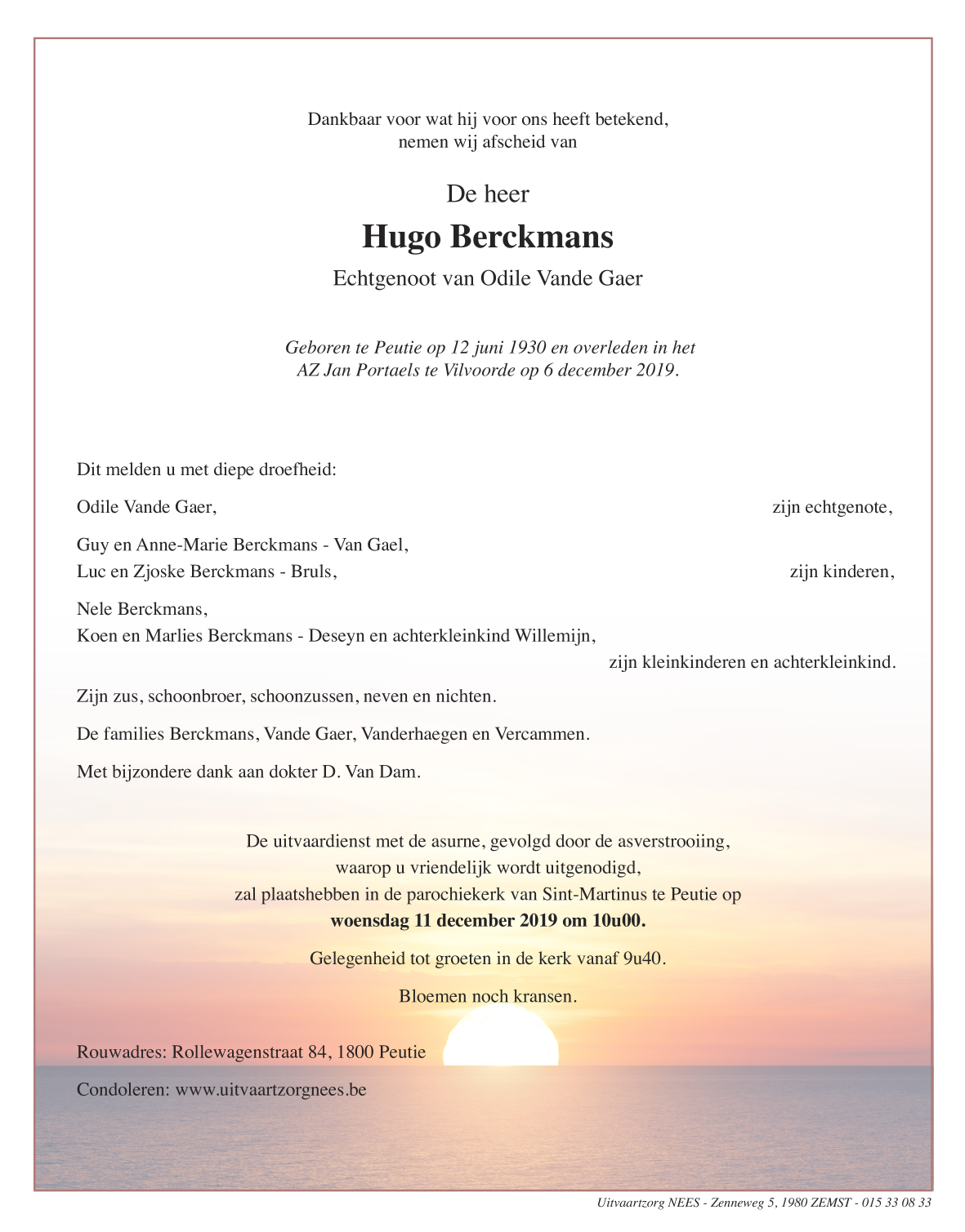 Overleden te Vilvoorde (1800) op vrijdag 6 december 2019 op 89-jarige leeftijd