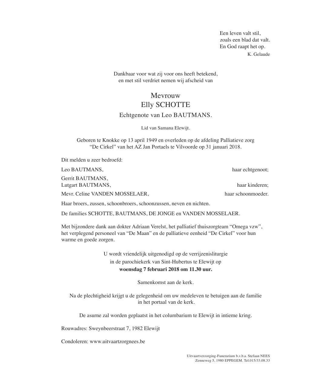 Overleden te Vilvoorde (1800) op woensdag 31 januari 2018 op 68-jarige leeftijd